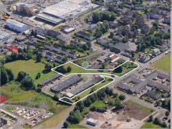 The site is accessed off Moss Road and is adjacent to Mossedge Industrial Estate, with Mosswood Care Home being nearby, together with a mix of traditional private and rented housing and new building housing.